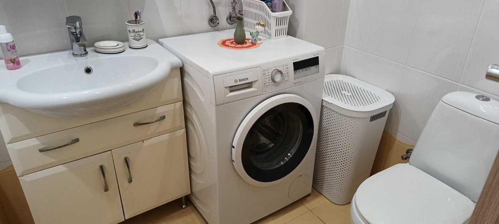 Туалет с ванной совмещены,теперь становиться полнометражная стир.машина.Полы в комнате и спальне ламинат.Коридор,кухня и санузел керамическая плитка-есть