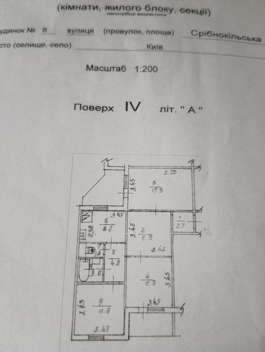 Трьох кімнатна квартира площею 78.7кв. м, житлова площа 41,6. Кухня S-8.2кв. м