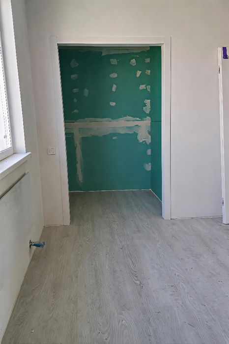 Стіни підготовлені під поклейку шпалер або інший декор (для фарбування потрібен фінішний шар зі склошпалером — додаткова опція за запитом)