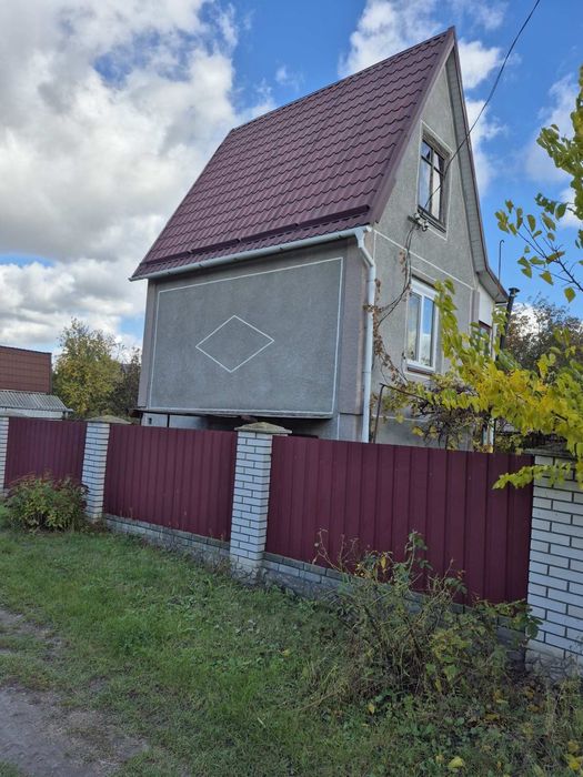 Ділянка 6 соток з двоповерховим будиночком, всього дві кімнати. Є напівпвдвальне приміщення на першому поверсі, де можна зберігати весь садовий інвентар, міні кухня, дуже хороша альтанка, літній душ, туалет в умивальник на вулиці. Підведено газ до будинку, підключений газовий конвектор в 1й кімнаті, є скважина. Хороший паркан з цегли і профнастилу. Дах з профнастилу, пластикові вікна. Поблизу озеро з пляжем, 5 хвилин пішки.