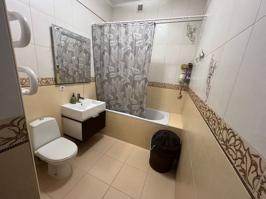 Закрытая Охраняемая ухоженная территория комплекса с видеокамерами и электронными ключами, с зелеными газонами и детской площадкой есть подземный паркинг для использования во время тревог. При отсутствии света включается генератор. Место для машины.Есть гостевой паркинг для машин.На территории детские площадки, магазин,фитнес- зал, парикмахерская. До открытого пляжа 10 минут пешком. Хорошая транспортная развязка,недалеко автобусная остановка с многими маршрутками.Чистый ухоженный просторный подъезд, чистый лифт, вход в дом по электронным ключам.