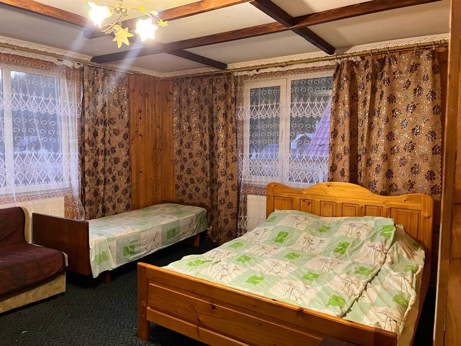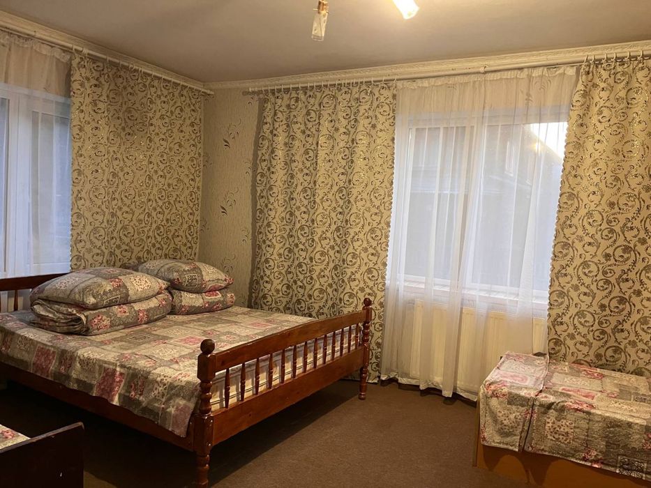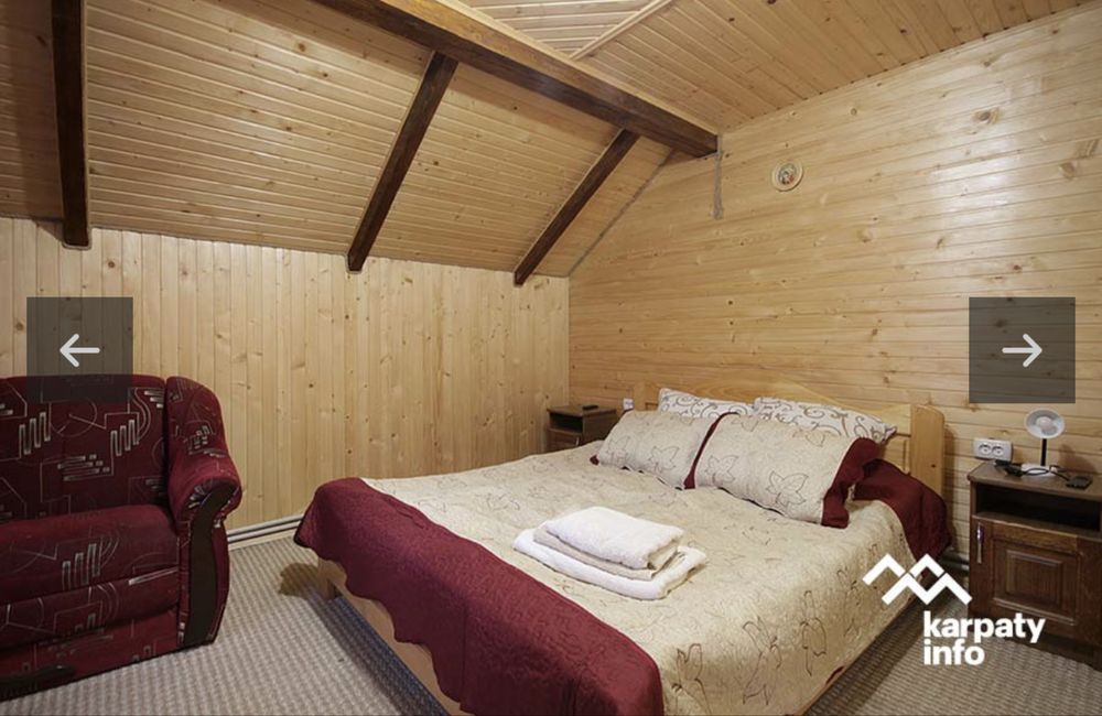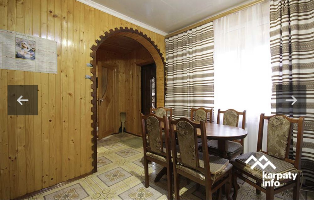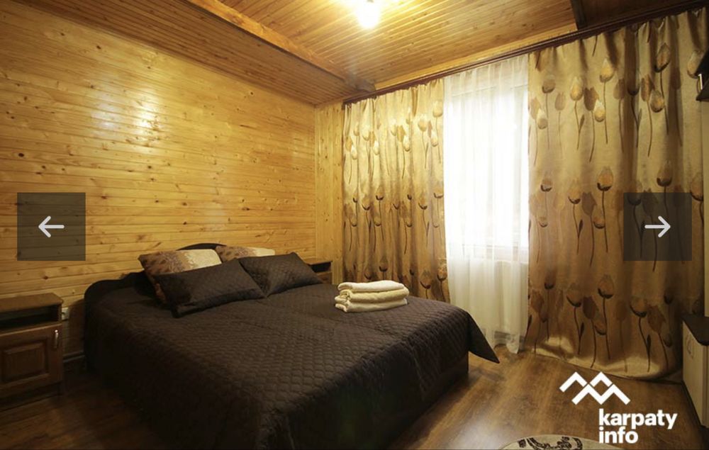 Будинок №1 (фото 1-7) максимально - 7 людей (3 спальні номера + розкладний диван, 2 санвузли, кухня) Є весь посуд, техніка, фен, пральна машина, рушники. Знаходиться на березі річки, біля будинку своя альтанка, мангал, гойдалка. Вартість 2500/доба.