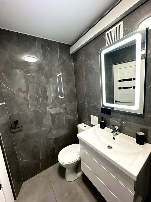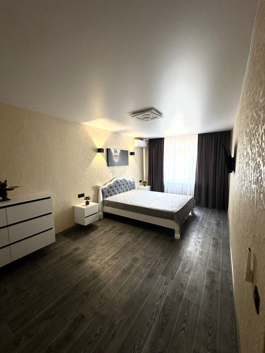 Квартира робилася «для себе» з якісними матеріалами, але ніхто не проживав жодного дня. Усе, що на фото: диван, ліжко, 2 телевізори, підвісні комод та тумби, сантехніка, пральна машина, бойлер, шафи та кухня вбудовані (з підсвіткою), кондиціонер, рушникосушка, пральна машина, холодильник та кухонна техніка залишається новому власнику.