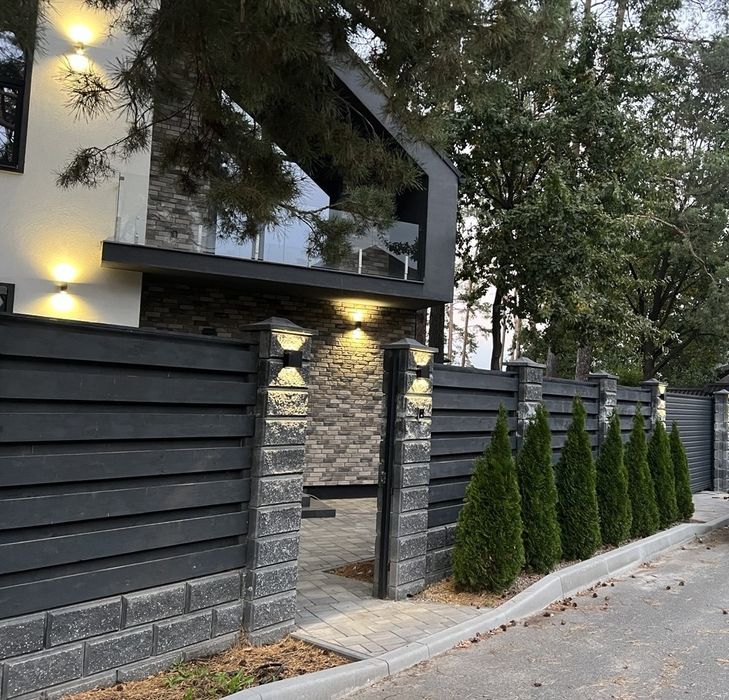 Готовий будинок в Скандинавському стилі-з ремонтом. Ходосівка. Власник; Будинок в Скандинавському стилі, повністю укомплектований меблями та технікою у лісі 170 кв.м. Ділянка 6 соток. Ходосівка. Від власника. Зроблений новий дизайнерський ремонт з якісних матеріалів : кухня повністю укомплектована технікою, сантехніка в санвузлах, камін, мраморна плитка, в кімнатах покраска, сучасне освітлення, штори. Ламінат в кімнатах на 2му поверсі, 1й поверх плитка. Столешня HPL, сучасні рукомийники з штучного каменю . Ділянка з озелененням та автополивом, автоматичні Ворота, 2 калітки на 2 сторони.