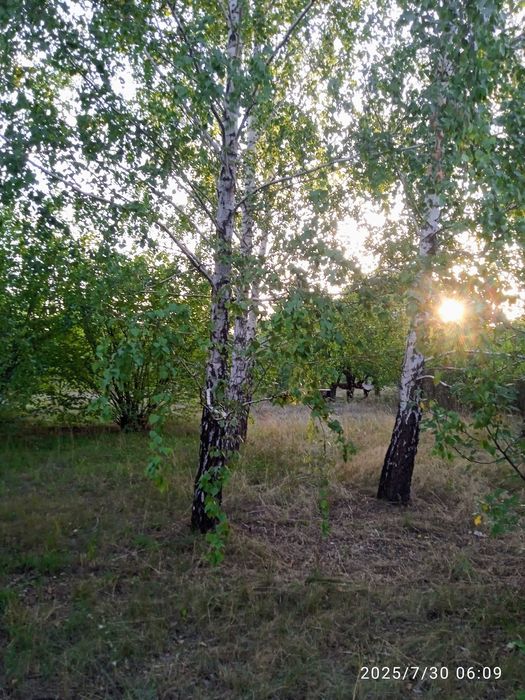 На участке своя берёзовая роща, весной берёзовый сок, грибы грузди шампиньоны, подснежники, деревья грецкого ореха, яблони, груши, черешня, рябина, боярышник, лещина. Благоприятная атмосфера, уютное спокойное место - идеально для постройки дома и зоны отдыха.