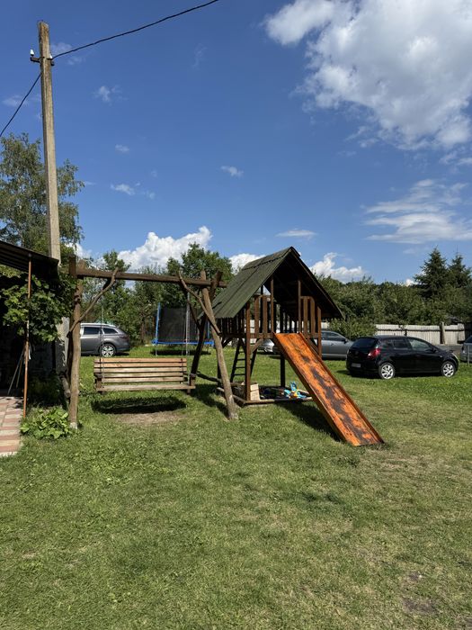 На території є альтанка, мангал, дитячий майданчик, літня кухня.