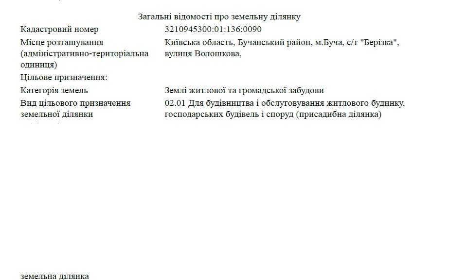 Земельна ділянка: |