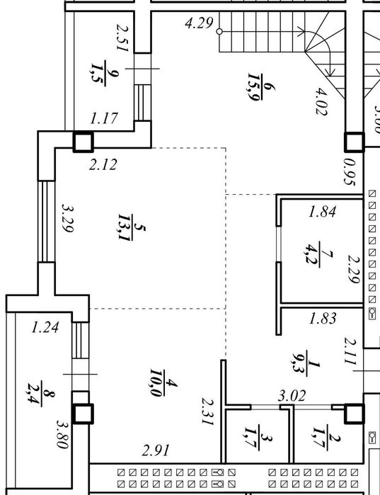 Характеристика приміщення: висота стелі, м: 2.51 • стан квартири: чорнова штукатурка • утеплення: зовнішнє