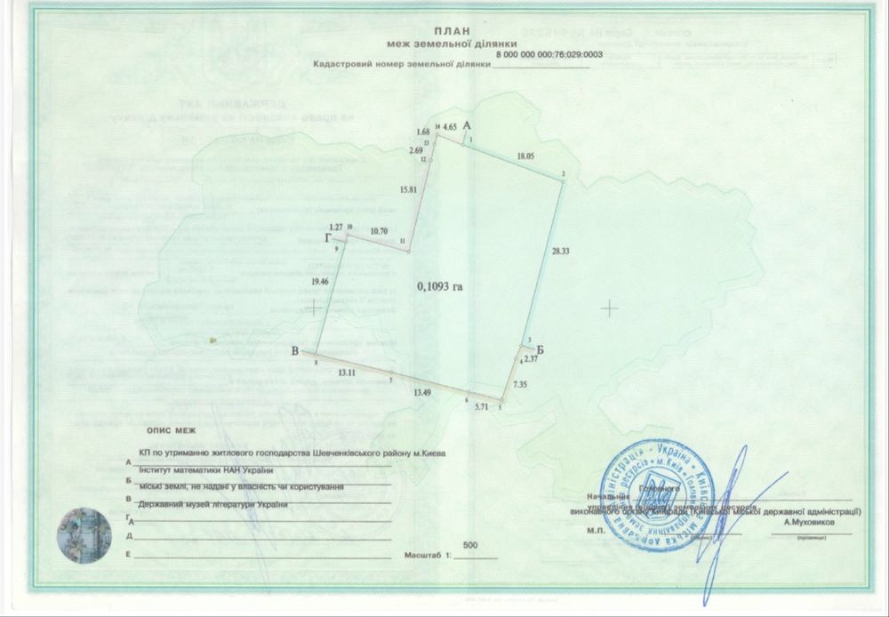 Печерський; Земля 0,1093 га собственник; Продаю свою землю, 0,1093 га, проходная зона, место по соседству с Институтом Математики, есть все разрешения на стройки. Цена договорная!