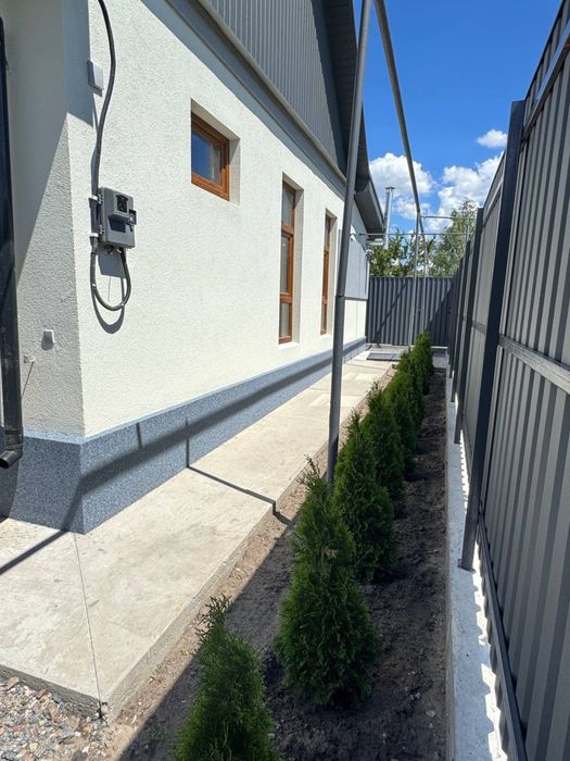 Парковка на два-три авто. Виведено зовнішнє освітлення. Великий чистий двір під ваші бажання. Новий паркан з металочерепиці. Озеленення по периметру.