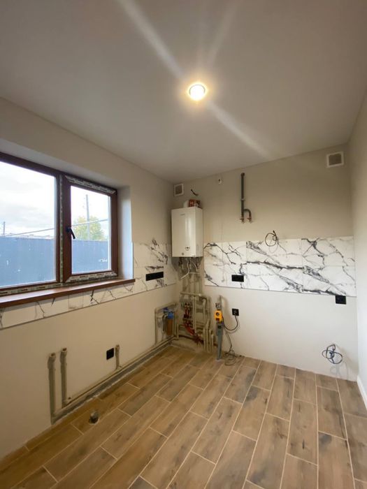 Кухня і вітальня, дві спальні, великий хол/кабінет, прихожа не прохідна. Нова проводка та щиток, газ, котел газовий новий, нові батареї, рушникосушарка, стіни гіпоскартон,натяжні стелі,звісно, нова утеплена криша з металочерепиці. Підігрів підлоги ванна, коридор, кухня. Новий переливний септик.