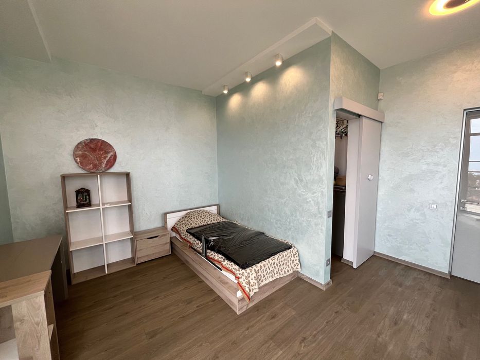 Спальня - із великим комфортним ліжком, зоною для макіяжу, власною гардеробною та виходом на балкон із панорамним видом на море.