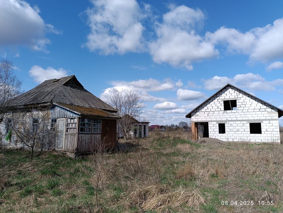 Ділянка 25 соток, є старий будинок та недобудований новий.