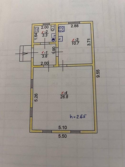 Загальна площа будинку 44.6 м2
