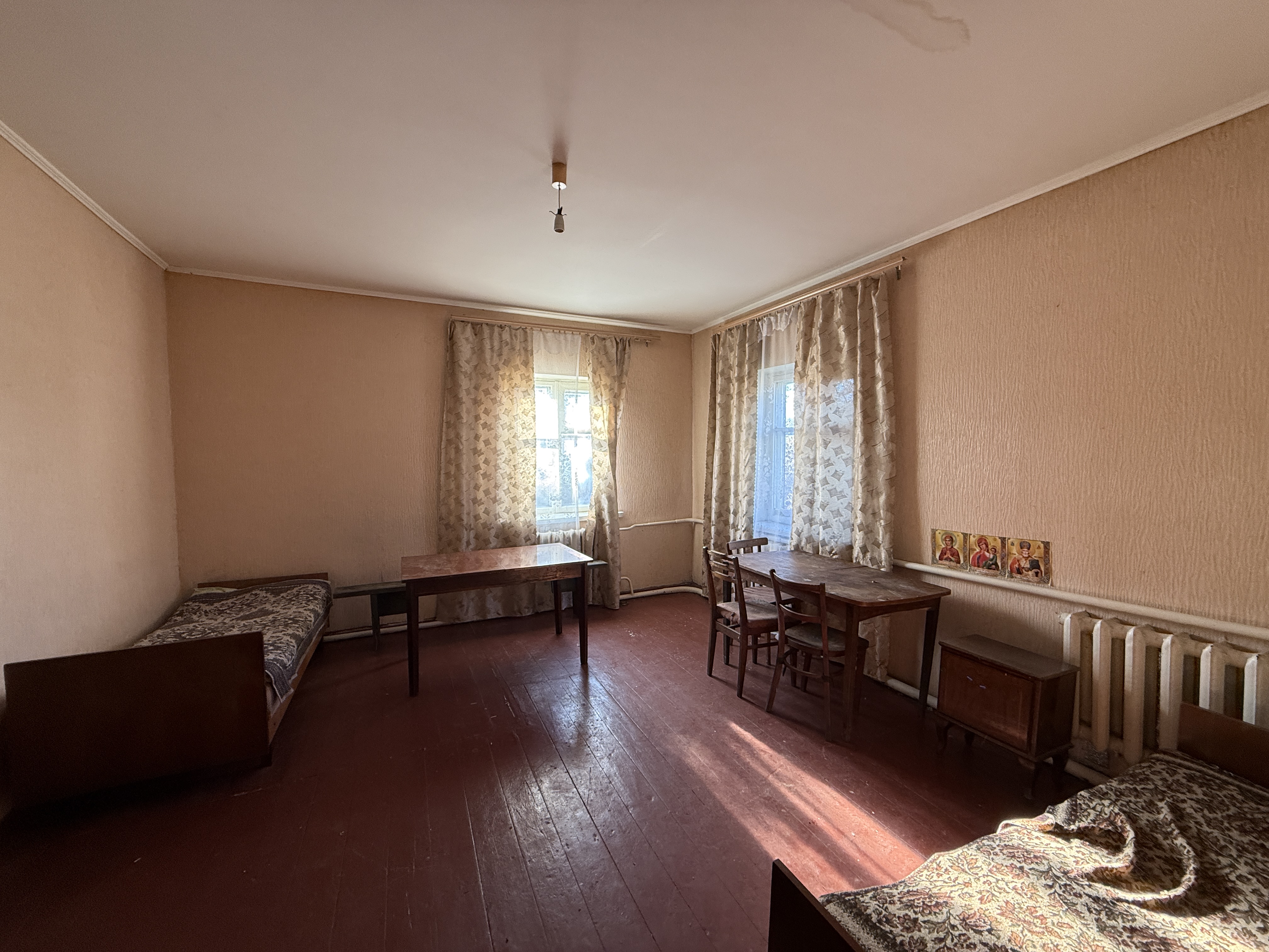 Продається цегляний будинок площею 74 м², земельна ділянка 50 соток. Усередині три кімнати, опалення комбіноване — газове та твердопаливне. Є електрика, скважина глибиною 72 метри, вода поки що не заведена в будинок, але все для цього вже готове.