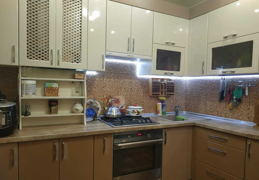 Евроремонт, індивідуальне газове опалення, повна заміна проводки на мідну, теплі поли (кухня, ванна кімната, туалет), кондиціонер, зовнішне та внутрішне утеплення, броньовані вхідні двери з Mul-t-lock. Межкімнатні двері індивідуального виробництва, дерев'яні. Пол - кухня, коридори, ванная, туалет - плитка, кімнати - ламінат (Німеччина), Дорога побутова техніка(духова шафа Electrolux, варочна Siemens, холодильник Liebherr). Сантехніка - Grohe. Дві величезні засклені лоджії з освітленням. Дві супутникові антени. Домофон. Перегородка на три квартири з металевими дверима. Кладовка на поверсі, 7 кв.м. Дуже гарна локація, транспортна розв`язка. Кінцева маршруток, скоростний, тролейбус. Поруч з будинком: дитячий майданчик, садочок, сквер для прогулянок, шиномонтаж, стоянка для авто. Неподалік три супермаркети. Дуже зручне розташування будинку