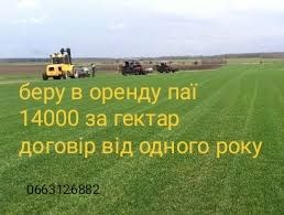 Оренда землі за га 14 000; Оренду паїв в білоцерківській області 14000 за гектар. Договір оренди можливий на ОДИН РІК.
