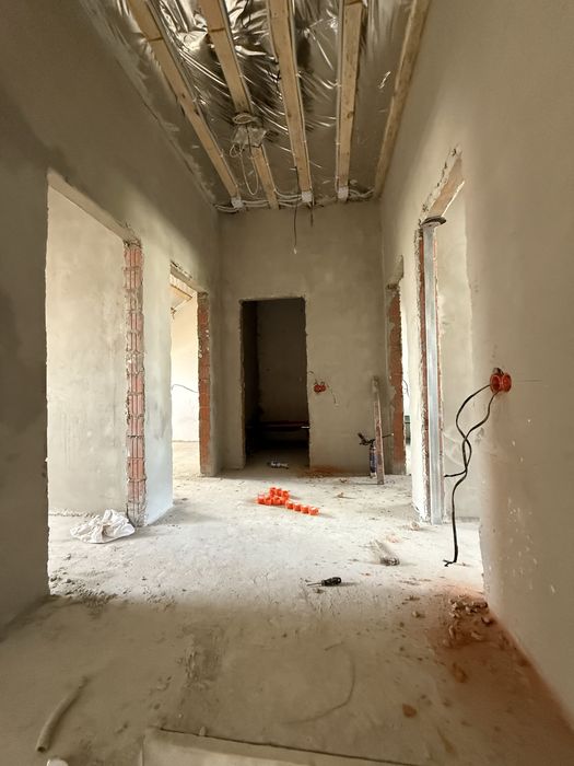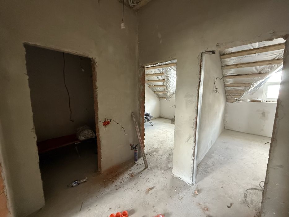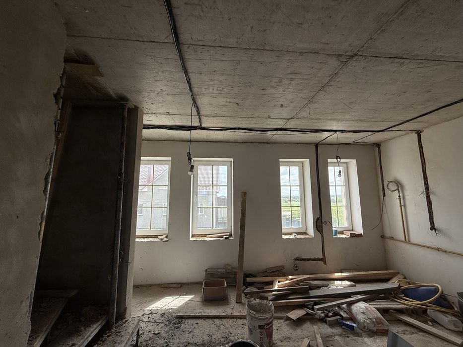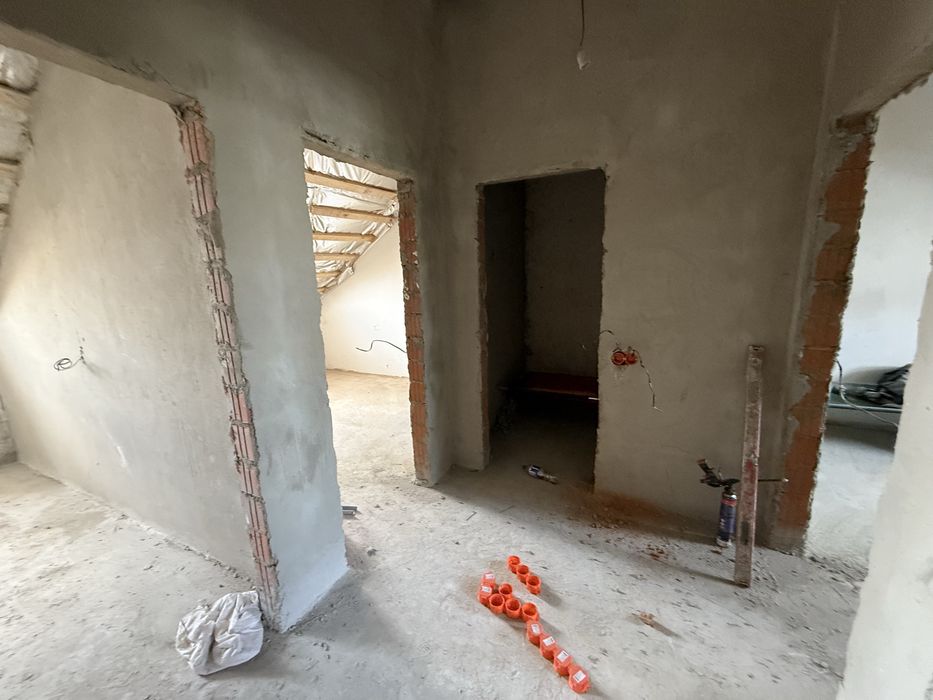 Перший поверх кухня вітальня санвузол. Другий поверх 3 спальні, гардероб, санвузол. Стеля на 2-ому поверсі утеплена мінеральною ватою 20см. Електрика розведена. Є підвал 16м2. Район супер, поруч зупинка громадського транспорту. Власник.