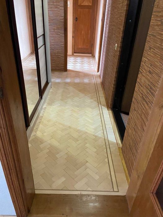 Індустріальний; Квартира двокімнатна, Індустріальний район ("Прольот"); Двокімнатна квартира з абсолютно новим ремонтом, якісний паркет. Загальна площа 51,6 кв.м. Кімнати роздільні - 17,9 кв.м та 11, 8 кв.м. Кожна кімната з балконом. Балкони обшиті "вагонкою", є шафки. В коридорі вбудована велика шафа-купе. Є тамбур на дві квартири обладнаний шафами та полицями для зберігання консервації, або інших речей. Всі вікна та балконні двері з якісної деревини. На всі інші питання відповім за телефоном 09******07.