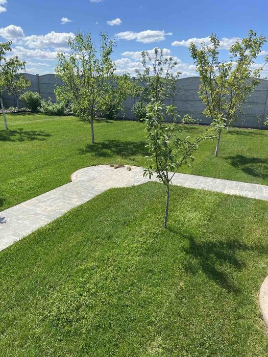 По всьому участку газон з автоматичним поливом, великий фруктовий сад (понад 30 дерев)