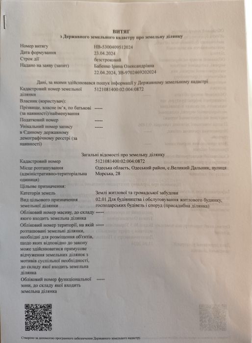 | Земельна ділянка: |