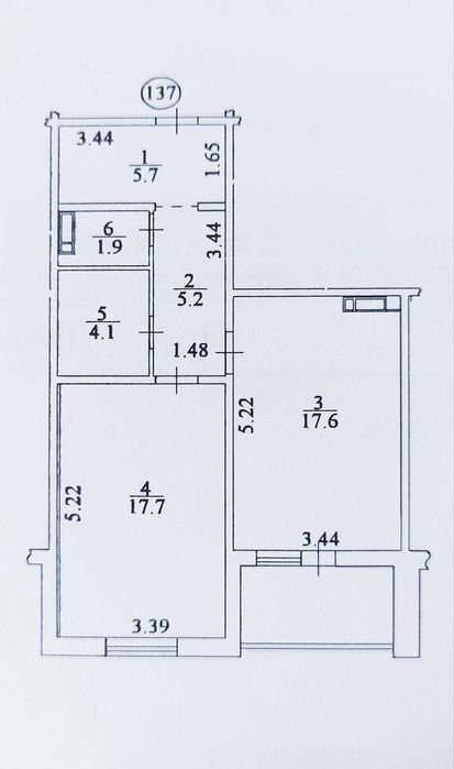 1-кімнатна квартира, 55 кв.м.: кімната 18 кв.м., кухня - 18 кв.м., засклена лоджія 2,5 кв.м. з кухні, санвузол роздільний.
