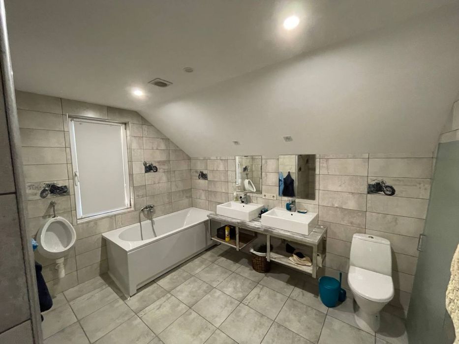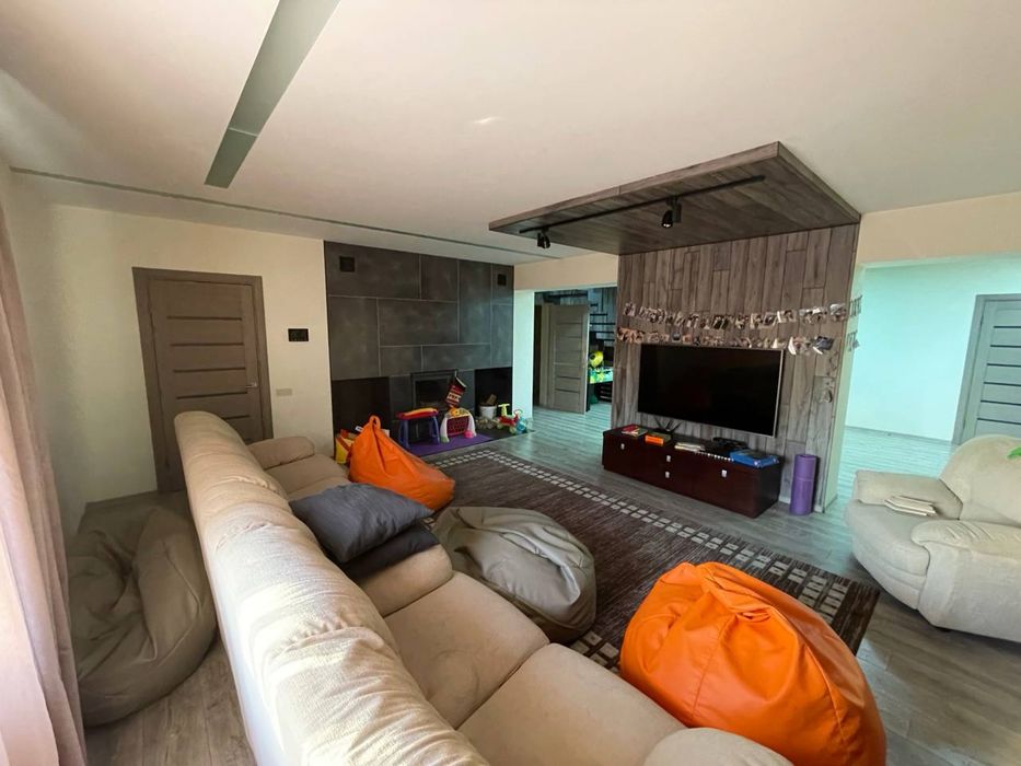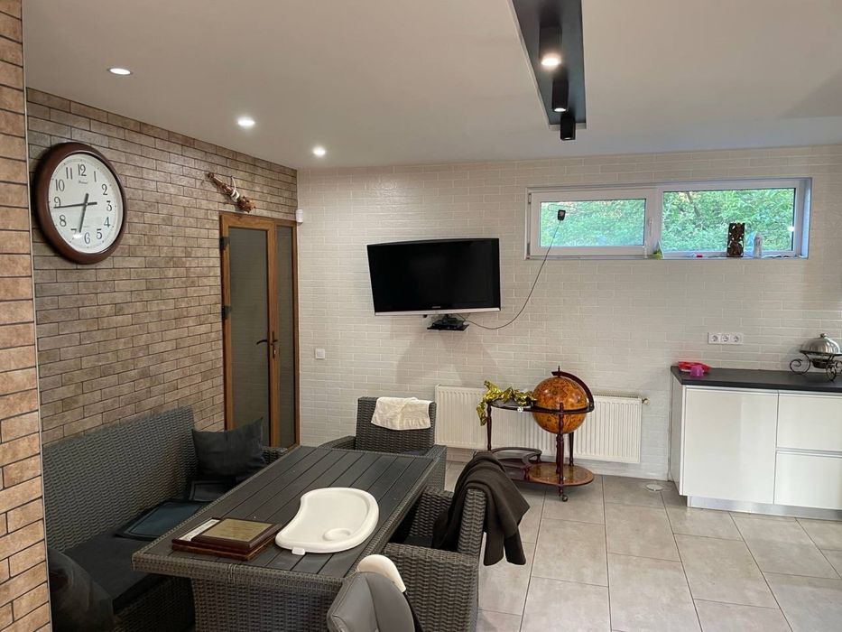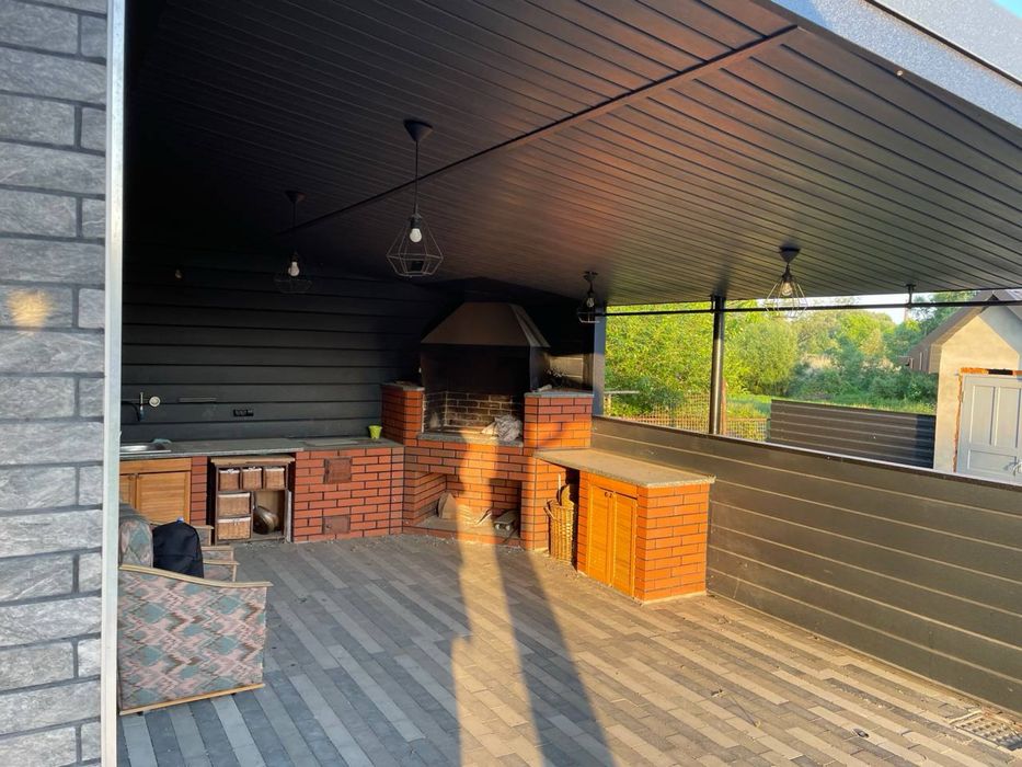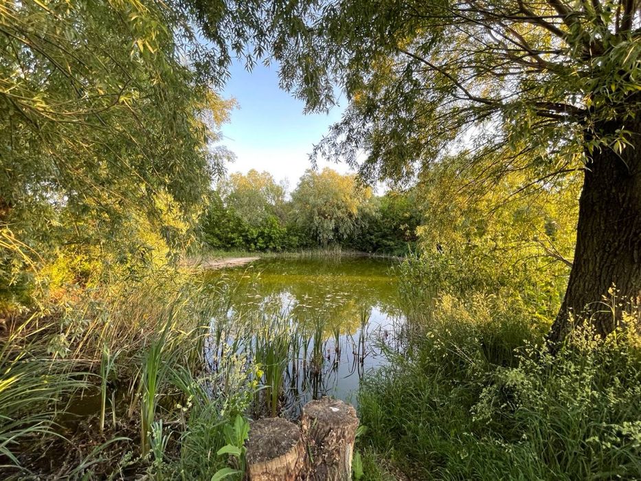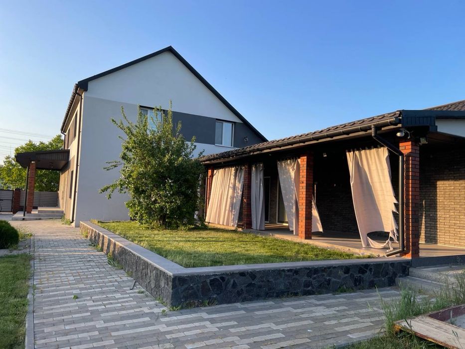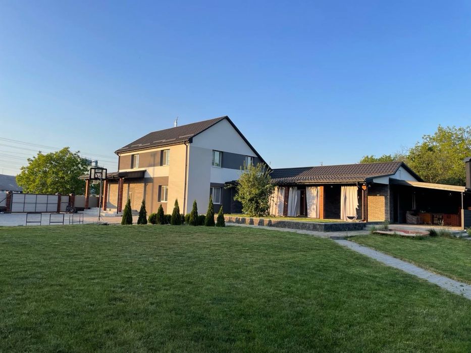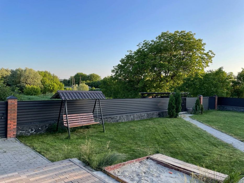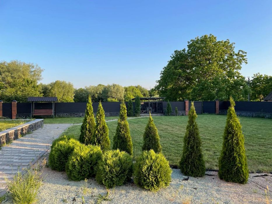 Сучасний будинок, велика ділянка, сад, озеро; На продаж великий сучасний будинок. Власне водопостачання. Дизельний електрогенератор. Отоплення - газ, твердотопливний котел, можливість підключення електрокотла, камін. 4 спальні, велика вітальня, три санвузла, кухня з всією технікою. Тераса та гриль зона. Ландшафт, сад, озеро.