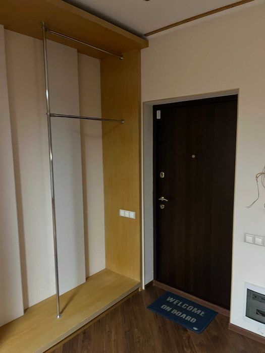 Вбудовані меблі - зони під гардероб, робоче місце, лоджія з деревом.
