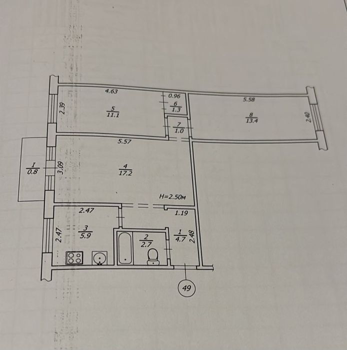 58 м2