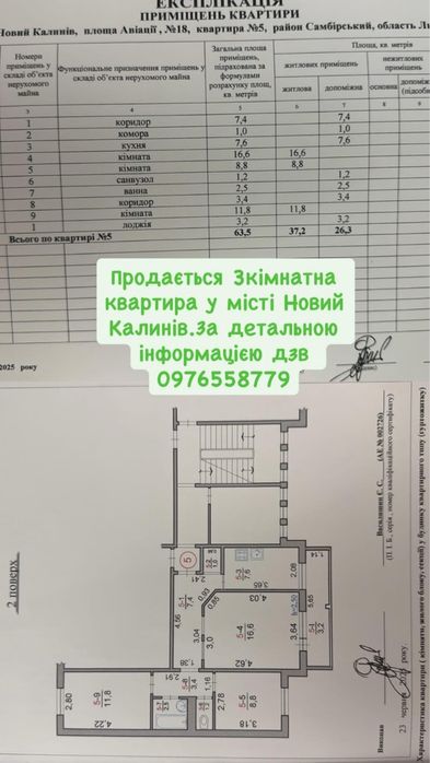 Продаж квартири !; Продається квартира у місті Новий Калинів За Детальною інформацією телефонуйте
