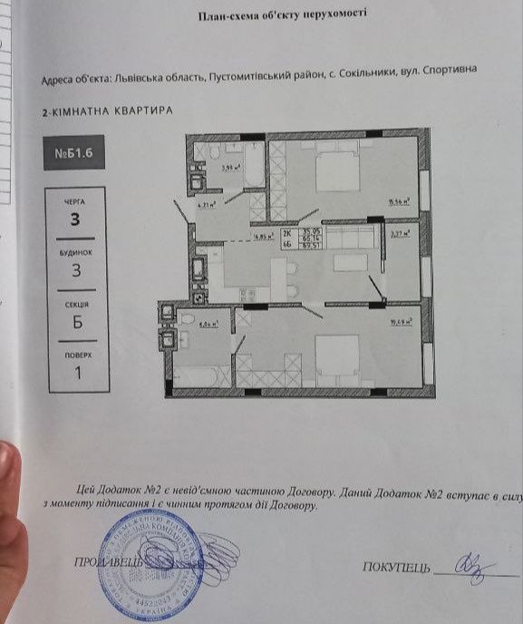Двох кімнатна квартира загальною площею69.5 квадратних метра; Продається 2 кімнатна квартира в Сокільниках ЖК Спортивний на 1 поверсі, 5 поверхового будинку