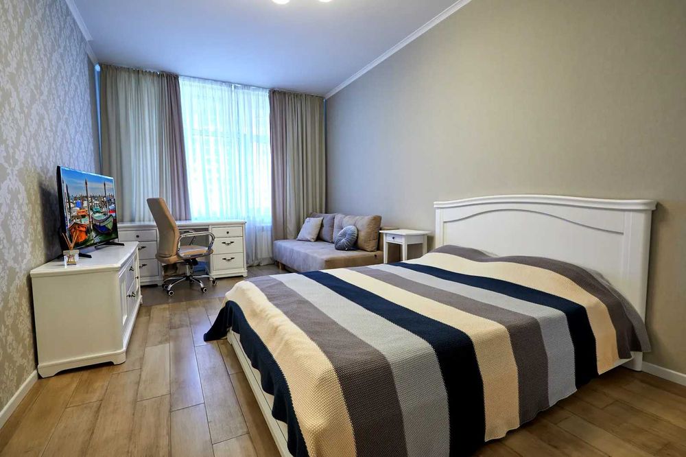 Шевченківський; Аренда 3-ком. квартиры в Жк бизнес-класс; Здесь для Вас есть мега просторная комната-студия, объединенная с кухней, большая спальня, затем еще одна комната-спальня и два отдельных санузла. Все комнаты имеют достаточно места для хранения вещей и т.п.