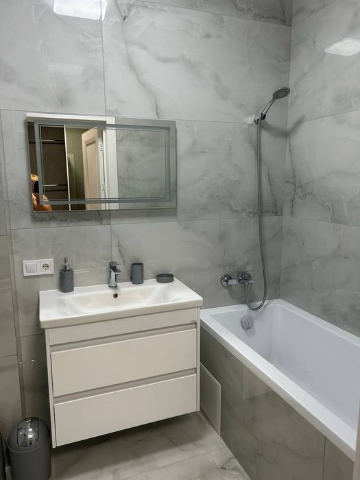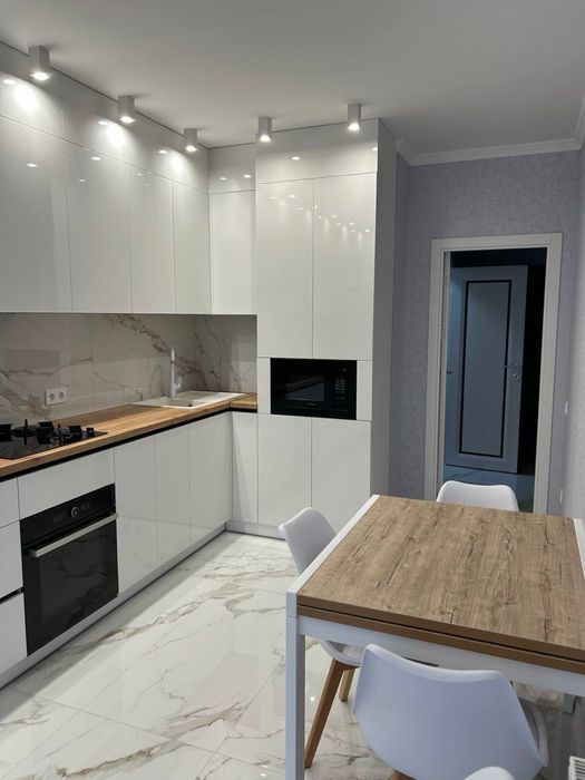 Квартира повністю мебльована якісними меблями та технікою (холодильник, пральна машина, варильна поверхня, духова шафа, мікрохвильова піч, газовий котел, витяжка, кондиціонер, бойлер). Кухня облаштована як для щоденного комфорту, так і для приготування вишуканих страв.