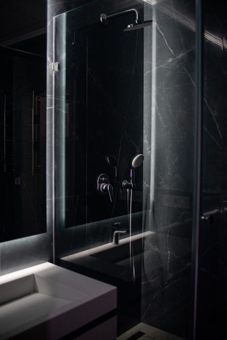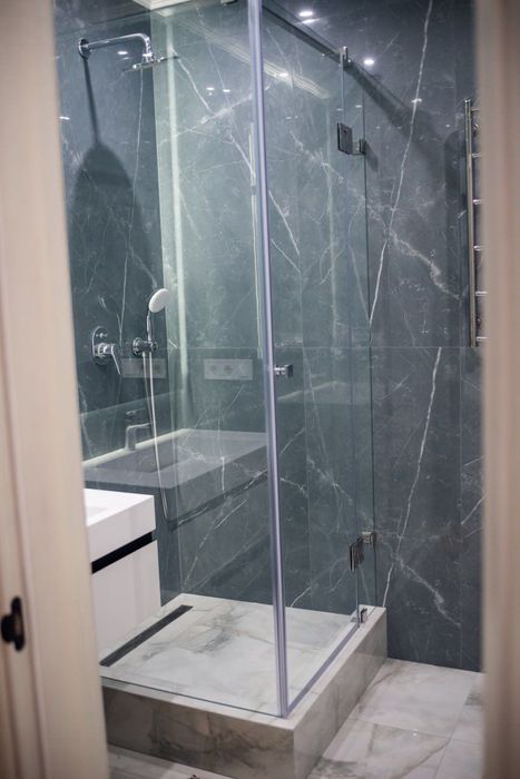 Кухня облаштована повність необхідною технікою. У квартирі два просторі санвузли із душовими кабінами. Вмісткий гардероб. Підсобне приміщення-пральня /кладова