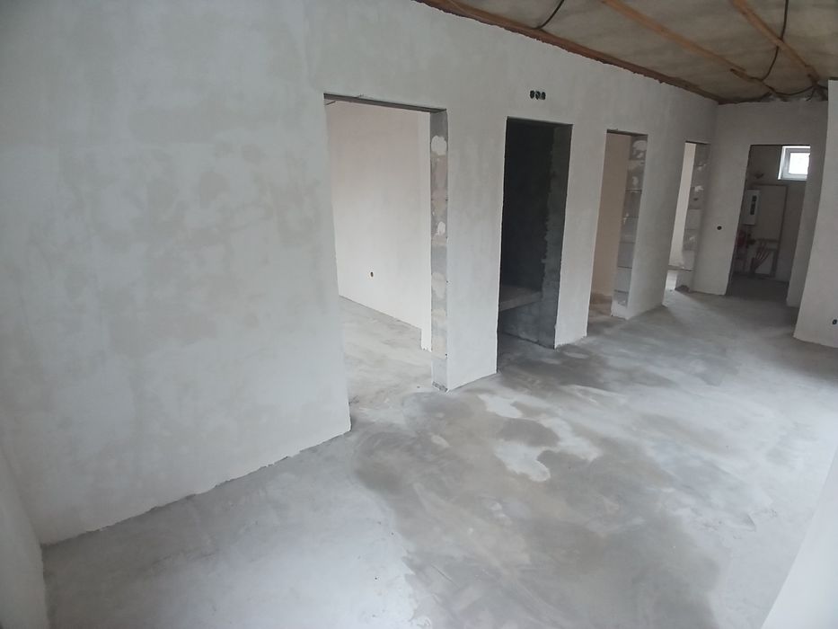 Будинок збудований з використанням сучасних технологій та якісних матеріалів. Стіни виконані з газобетону, що забезпечує відмінну теплоізоляцію та енергоефективність. Фасад будинку оздоблений штукатуркою, яка надає йому естетичний зовнішній вигляд.