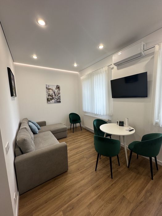 Здається Квартира 1 кімнатна, центр.; Здам в довгострокову оренду квартиру в центрі, вулиця Купчинського 12, в квартирі велика спальня та кухня з вітальнею, перша здача, сучасний якісний ремонт, приватний двір, паркомісце, індивідуальне опалення, тепла підлога, два Led-телевізори, пральна та сушильна машини Miele, посудомийка, кондиціонер, велике ліжко з ортопедичним матрацом та два розкладних дивани
