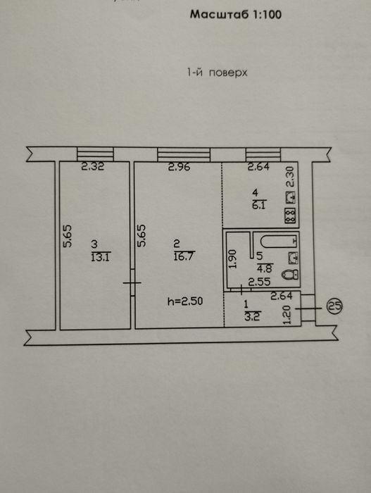2-х кімнатна квартира на 1 поверсі, вікна виходять у двір