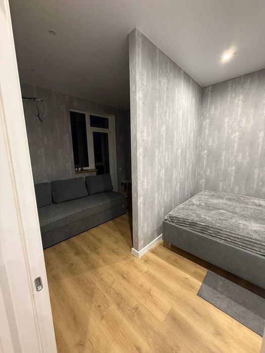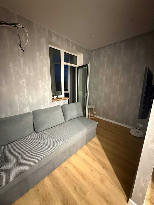 Облаштована меблями для вашого комфортного проживання - вдоспальне ліжко, диван, дві шафи, гардеробна, шафи у ванній, шикарна кухня.