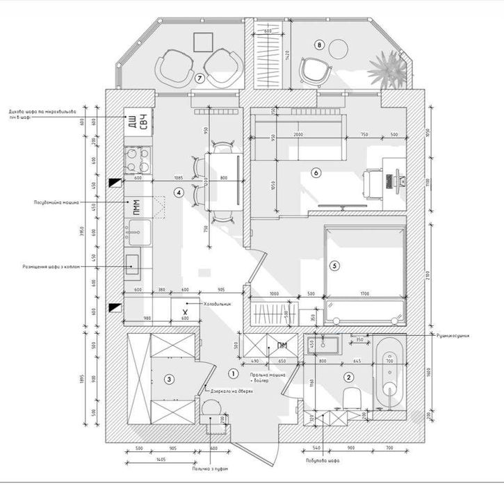 Квартира обладнана усією необхідною технікою - автономний газовий котел, пральна машина, холодильник, посудомийка, вбудована духова шафа та мікрохвильовка, газова плита, телевізор, оптичний інтернет, пилосос.