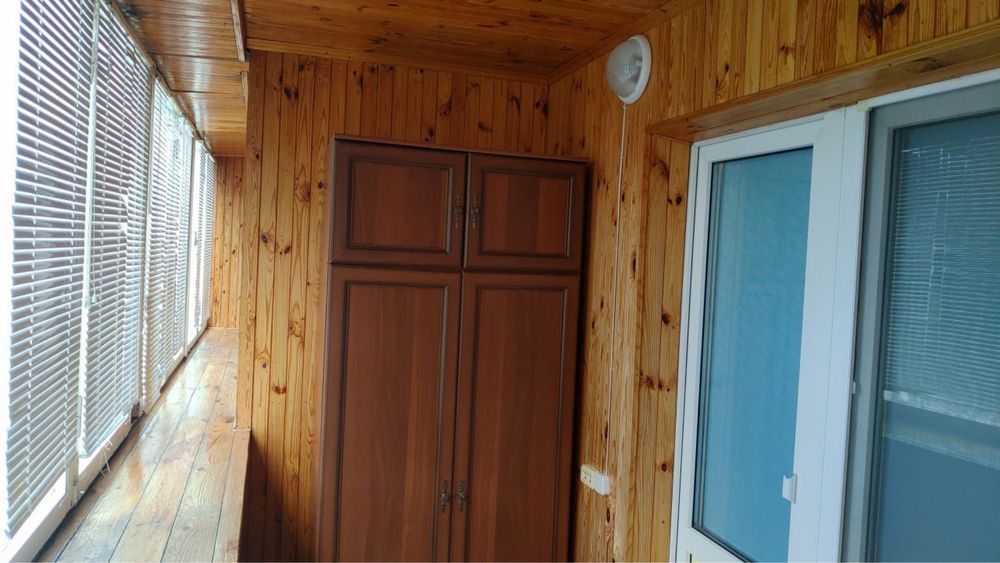 Двойная широкая лоджия с кухни и комнаты.