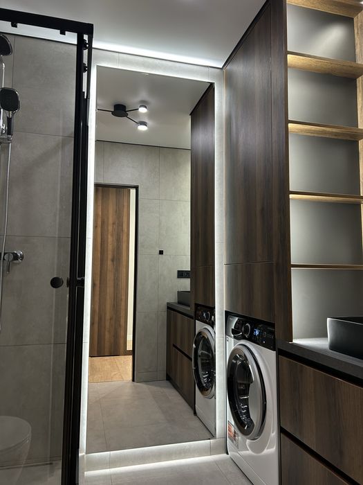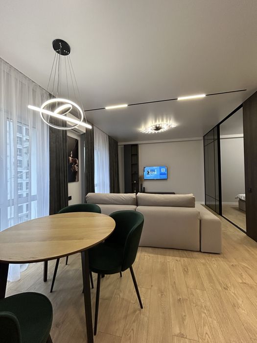 Зроблений сучасний ремонт по дизайнерському проєкту.