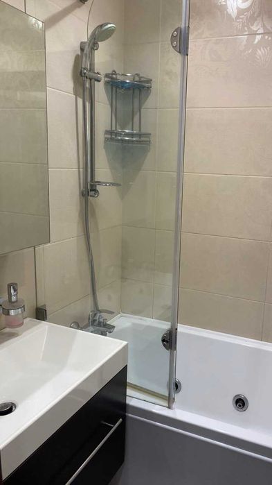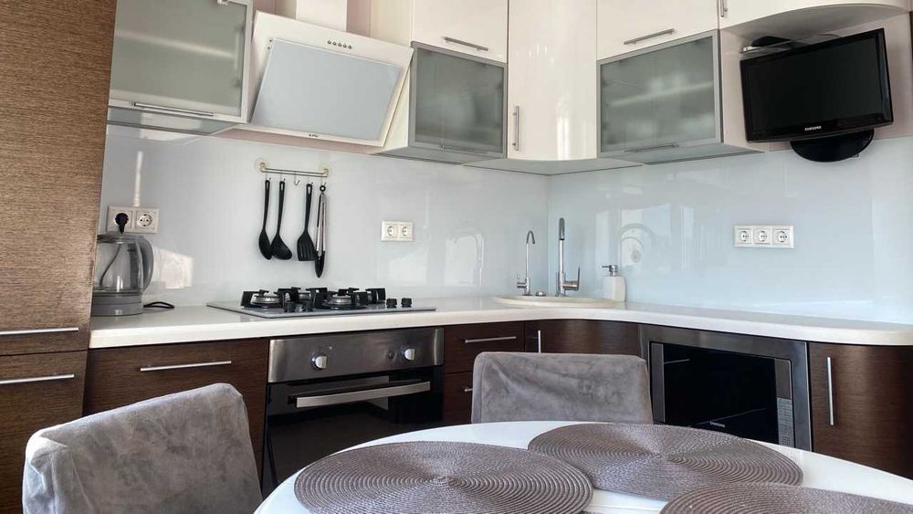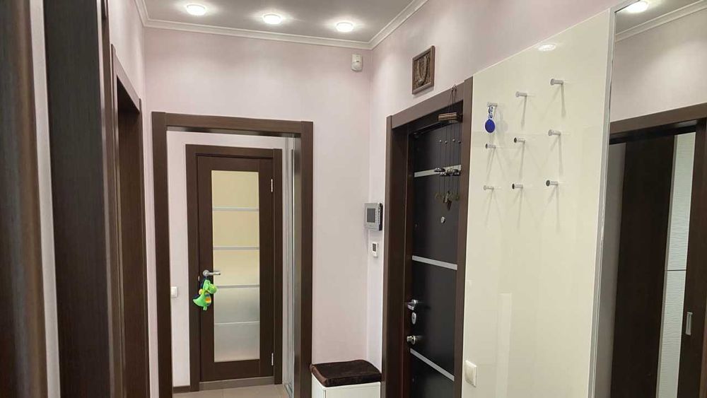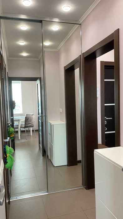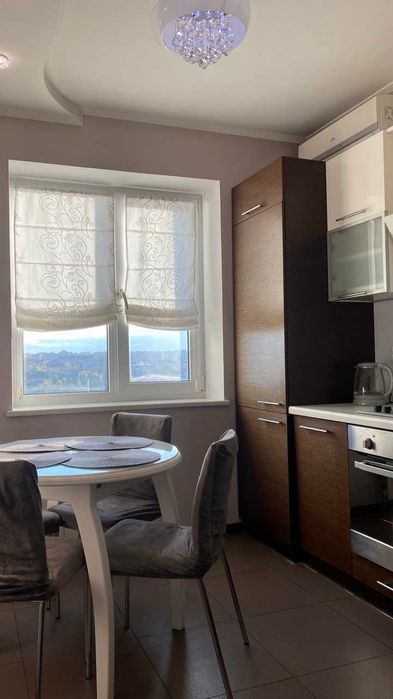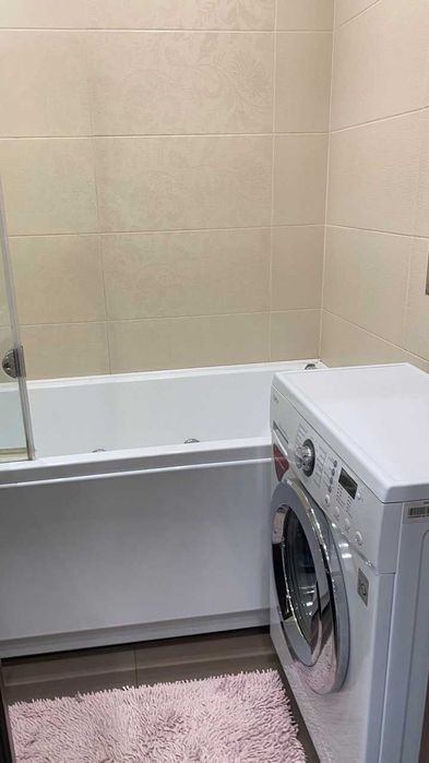! Меблі, двоспальне ліжко, 2 кутових дивани, шафа-купе, паркетна дошка, кахель, підлога з підігрівом (коридор, кухня, сан. вузли), джакузі, холодильник вбудований, посудомийна та пральна машини, бойлер, три кондиціонери (в кімнатах і на кухні), мікрохвильовка, праска, сейф, пультова охорона, відео-домофон, посуд, 2 телевізори (кімната, кухня). Хороша транспортна розв'язка, до швидкісного трамваю 5 хвилин, достатньо місць для паркування. Поруч: дитячий садок, школа до 500 м, футбольне поле, зона відпочинку на озері "Віра". Поруч магазин, кіоск, аптека, ресторан, кафе, відділення Нової пошти, банкомат. Готова до заселення! Без тварин, без курців. (09**********87 Наталія.