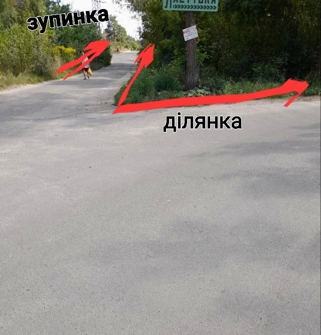 Ділянка кутова, рівна( чудове місце для магазину, кафе),поруч зупинка автобусу (до Києва