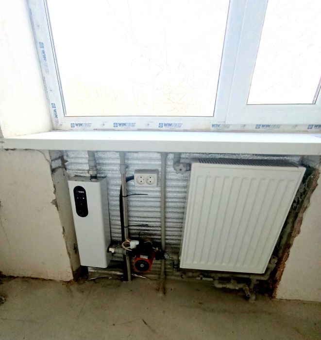 Встановлено електроопалення: електрокотел+ насос+ радіатори по всій квартирі.