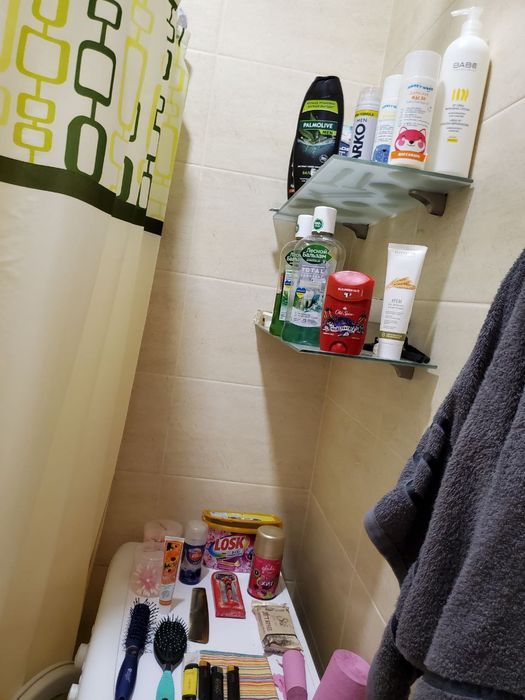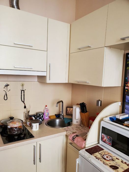 Есть все необходимое для жизни: встроенная кухня, шкаф купе, большой удобный диван, стол, стулья, холодильник, стиральная машина, бойлер, пылесос, гладильная доска, телевизор, посуда (кастрюли, тарелки, чашки, ложки и вилки).