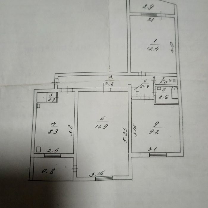 Загальна площа 64.4кв., кухня 8.3кв. з балконом.