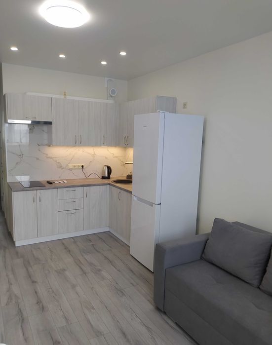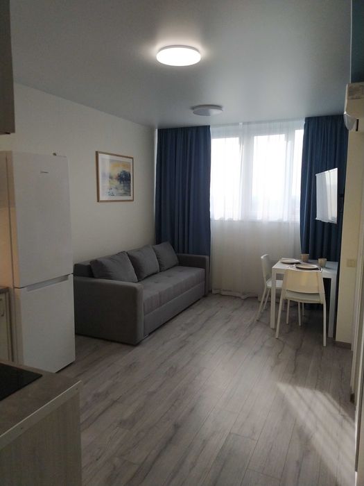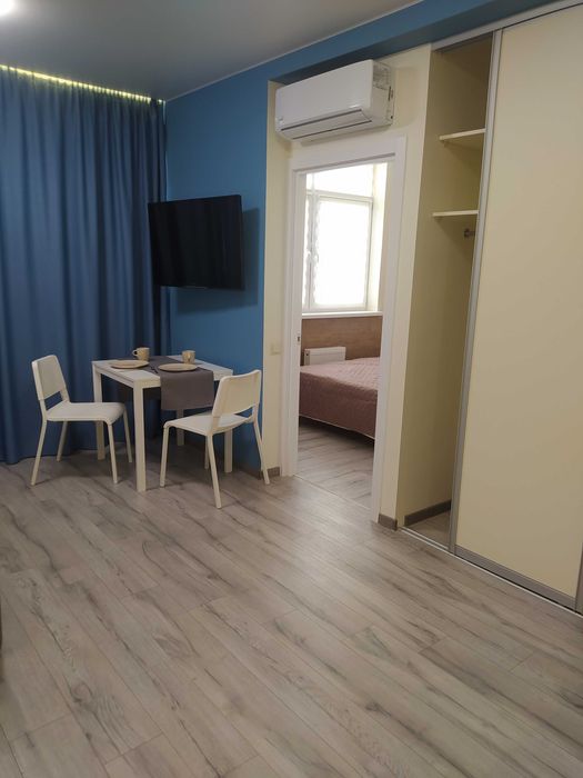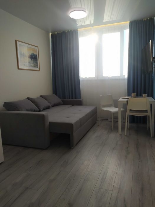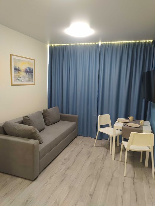 Здається в оренду світла, затишна однокімнатна квартира з диваном та великим ліжком (Євродвушка) у новому будинку з дизайнерським ремонтом.