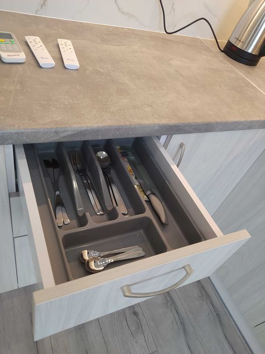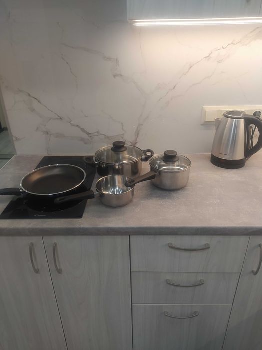 Техніка – варильна панель, великий холодильник,Великий смарт телевізор, Wi-Fi, пральна машина, бойлер, чайник, мікрохвильова піч, кондиціонер.