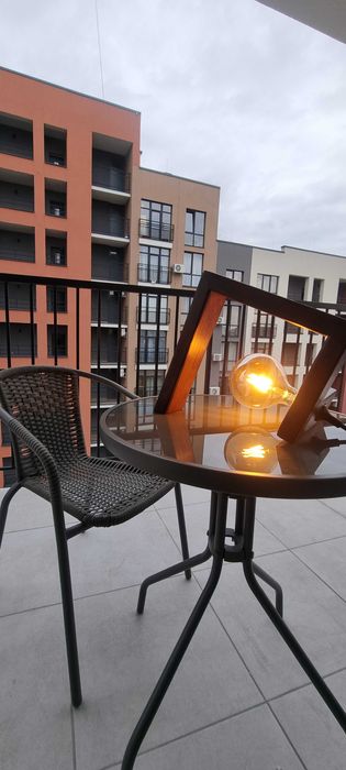 Планування складається з окремої спальні, вітальні з кухнею-студіо та великого балкона — ідеальне для ранкової кави чи вечірнього відпочинку.