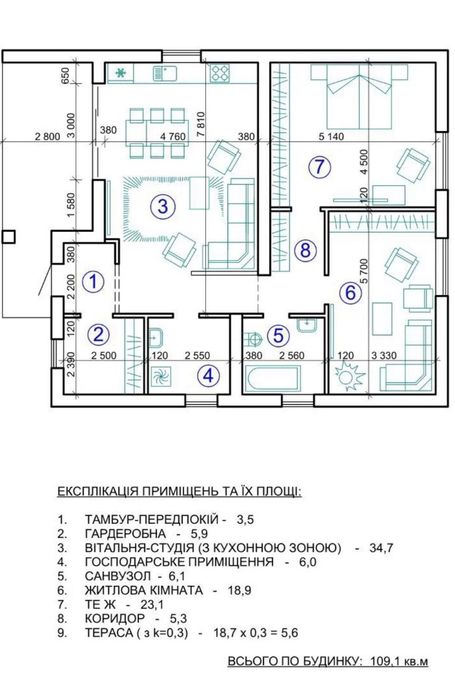 Загальна площа - 110 м2.